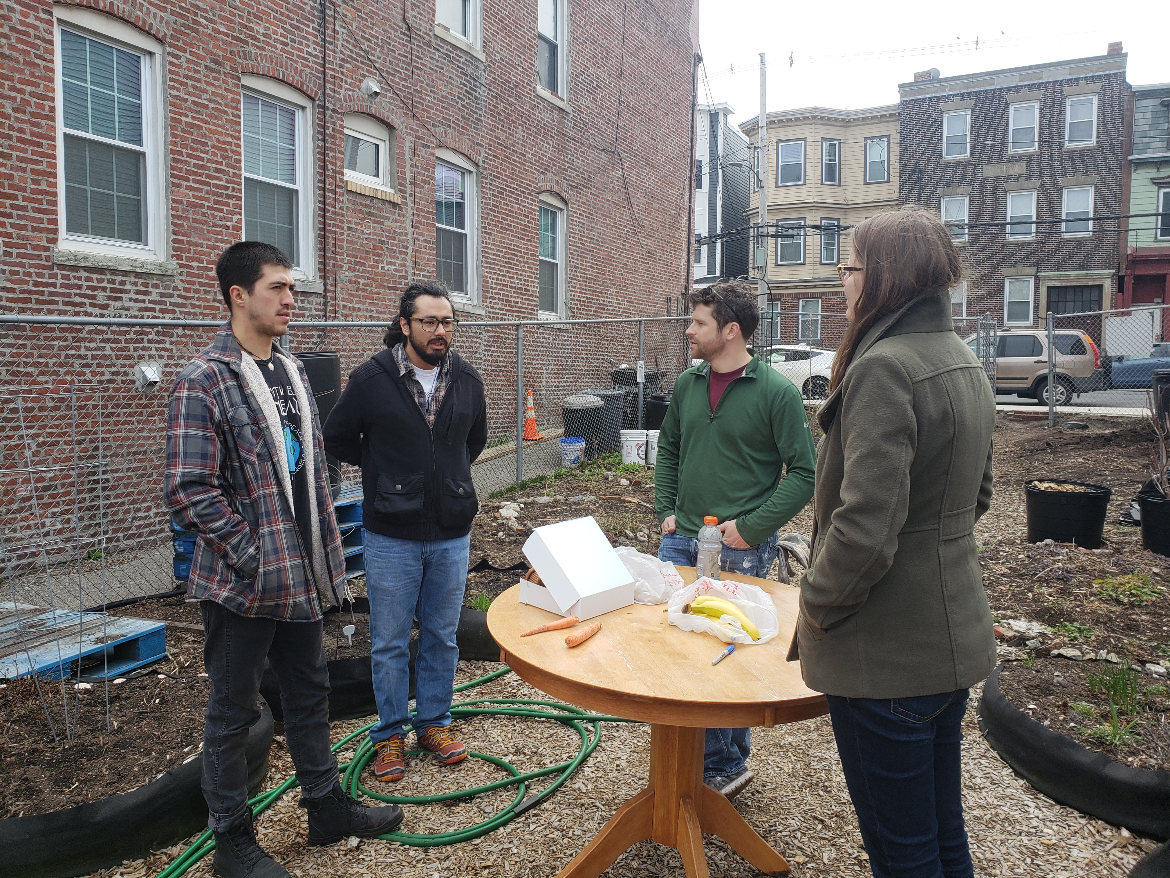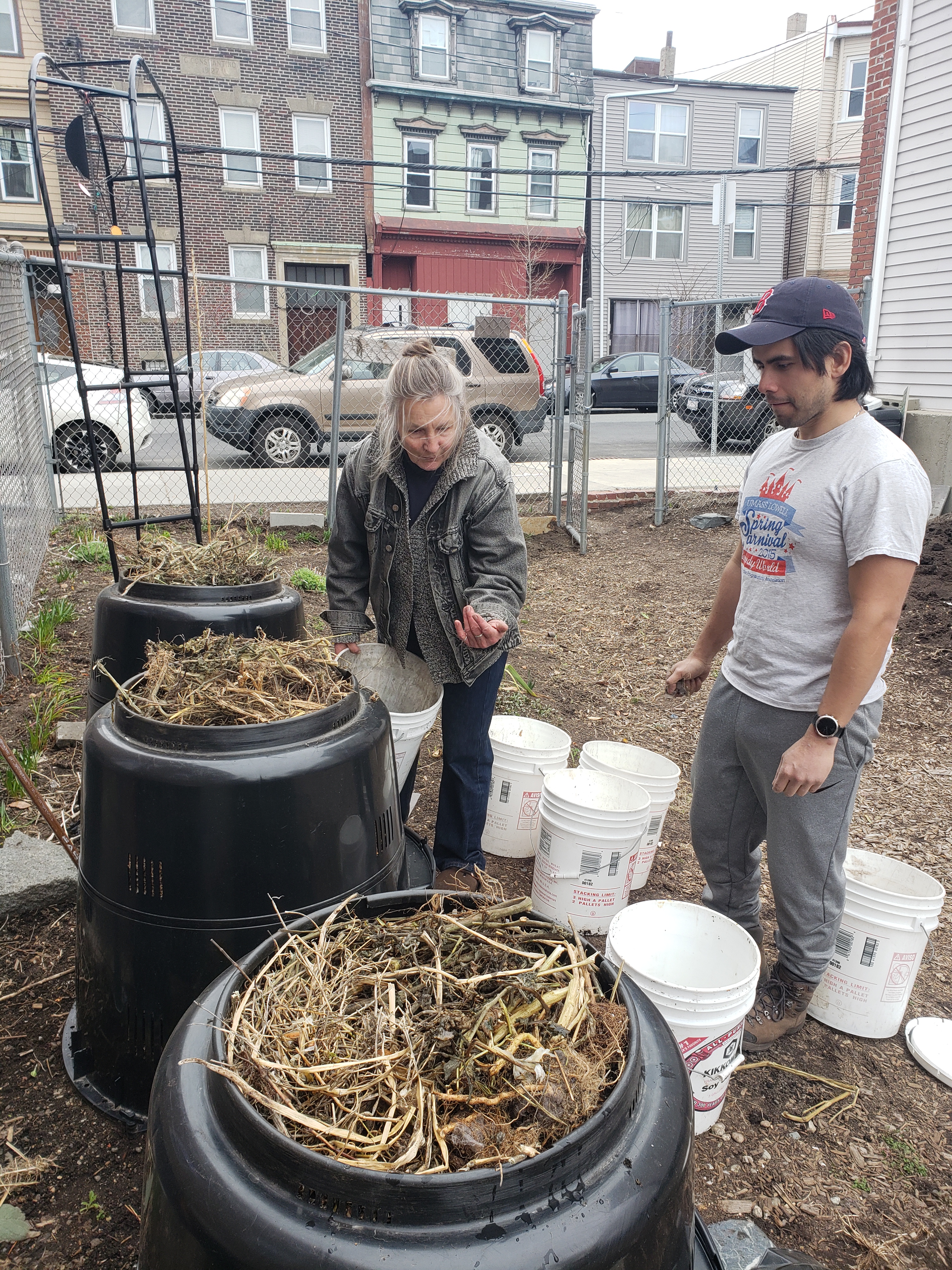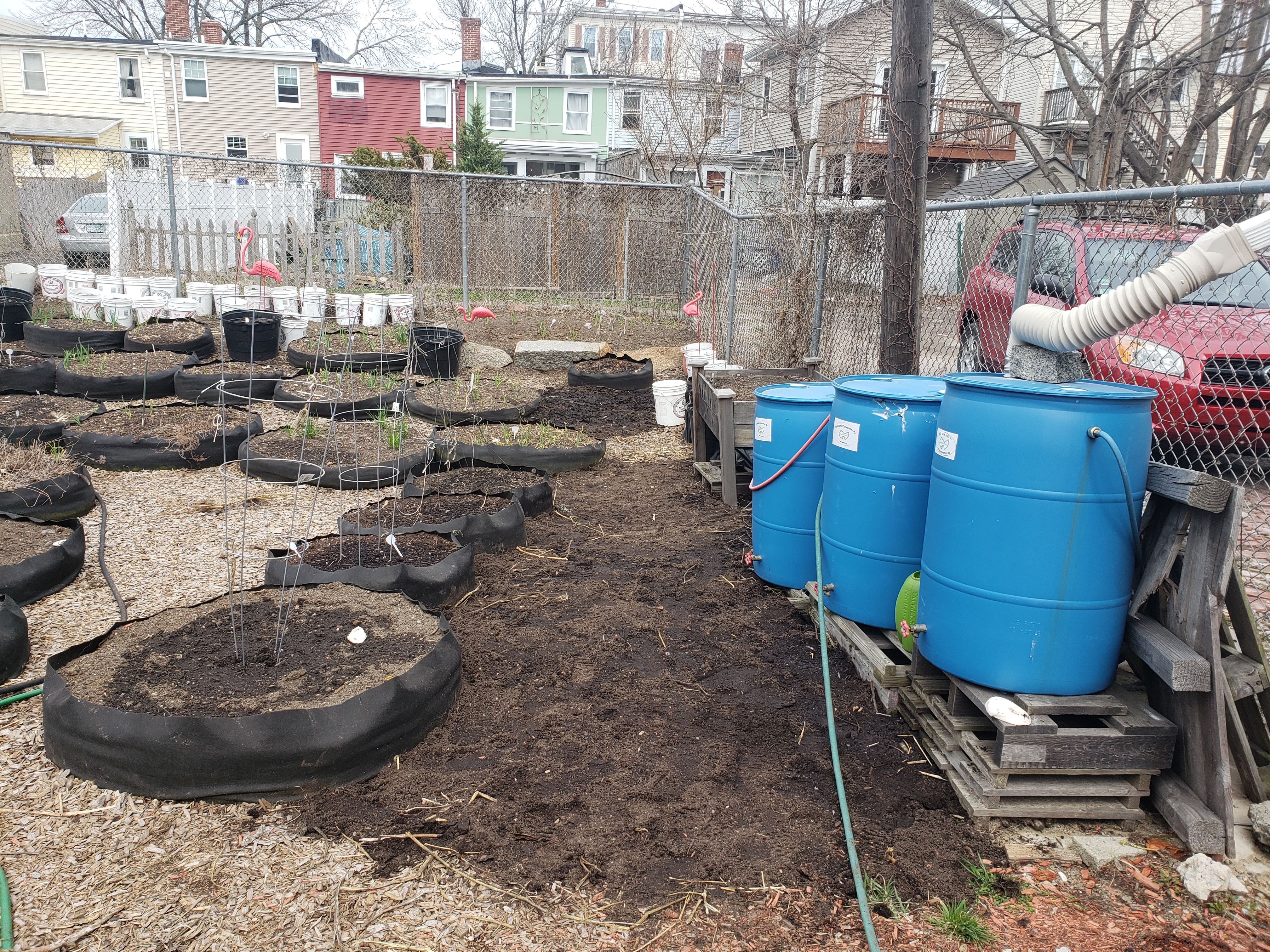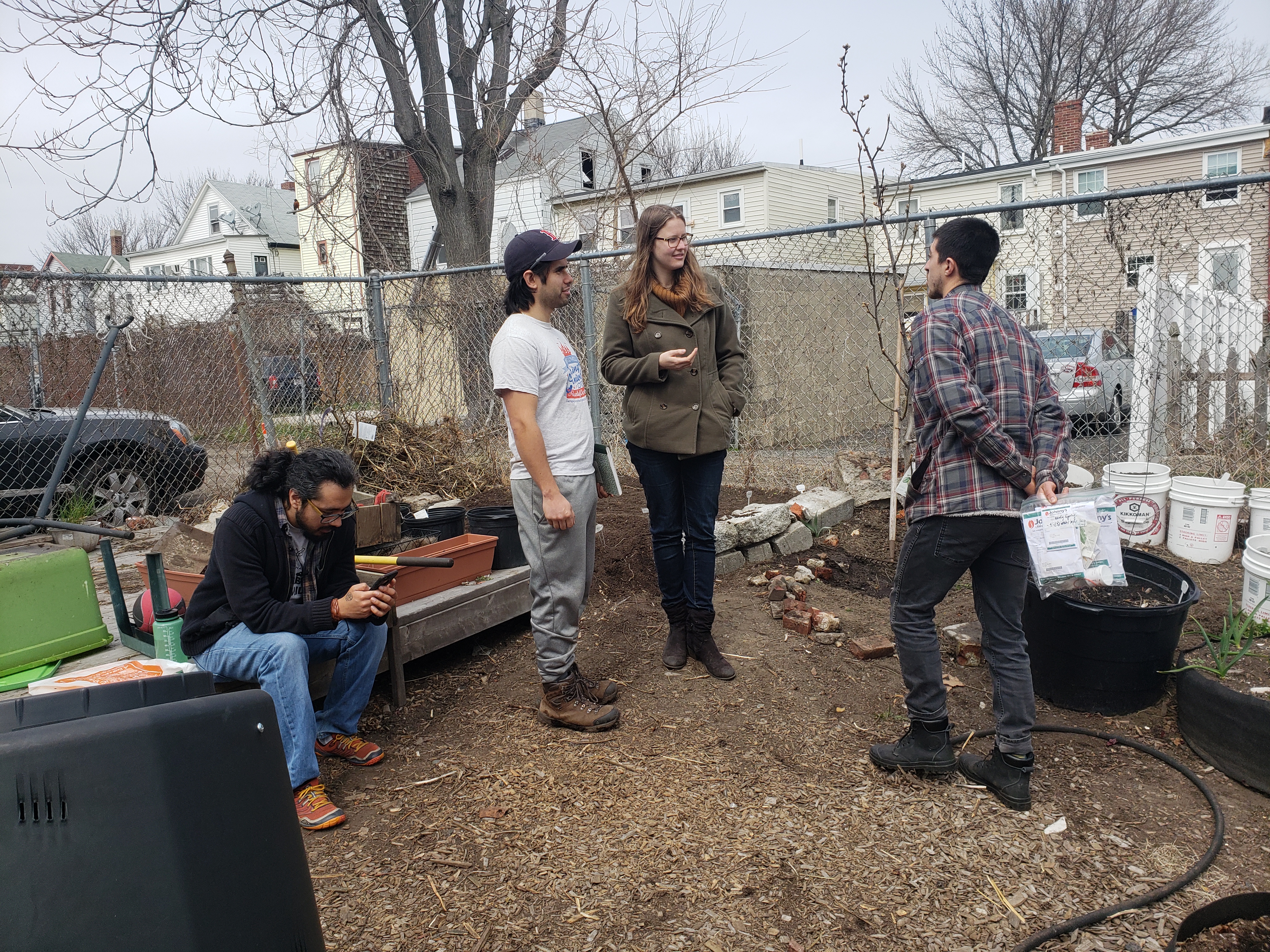 Like someone who is leaving a party half-heartedly, winter is taking its time with a long good-bye. So we were lucky to have a nice warm day today to keep things moving at the farm: more cold-weather crop seeds in the ground, more organizing the space for easier access, protecting the young Persimmon and Asian Pear trees, sheet-mulching in spaces that were eroded, and planning, and chatting.
