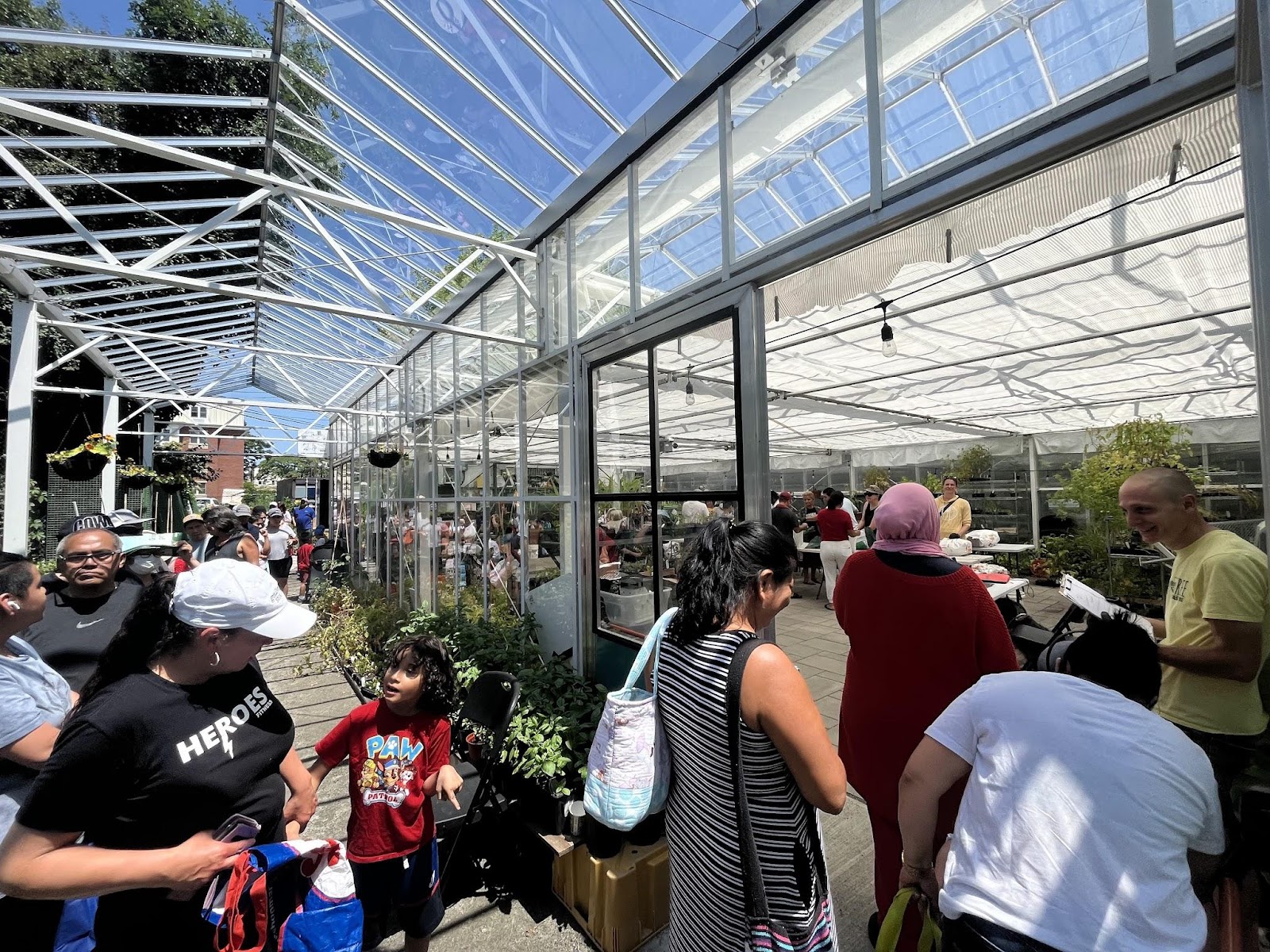 East Boston residents line up at our greenhouse to receive a free local produce share
