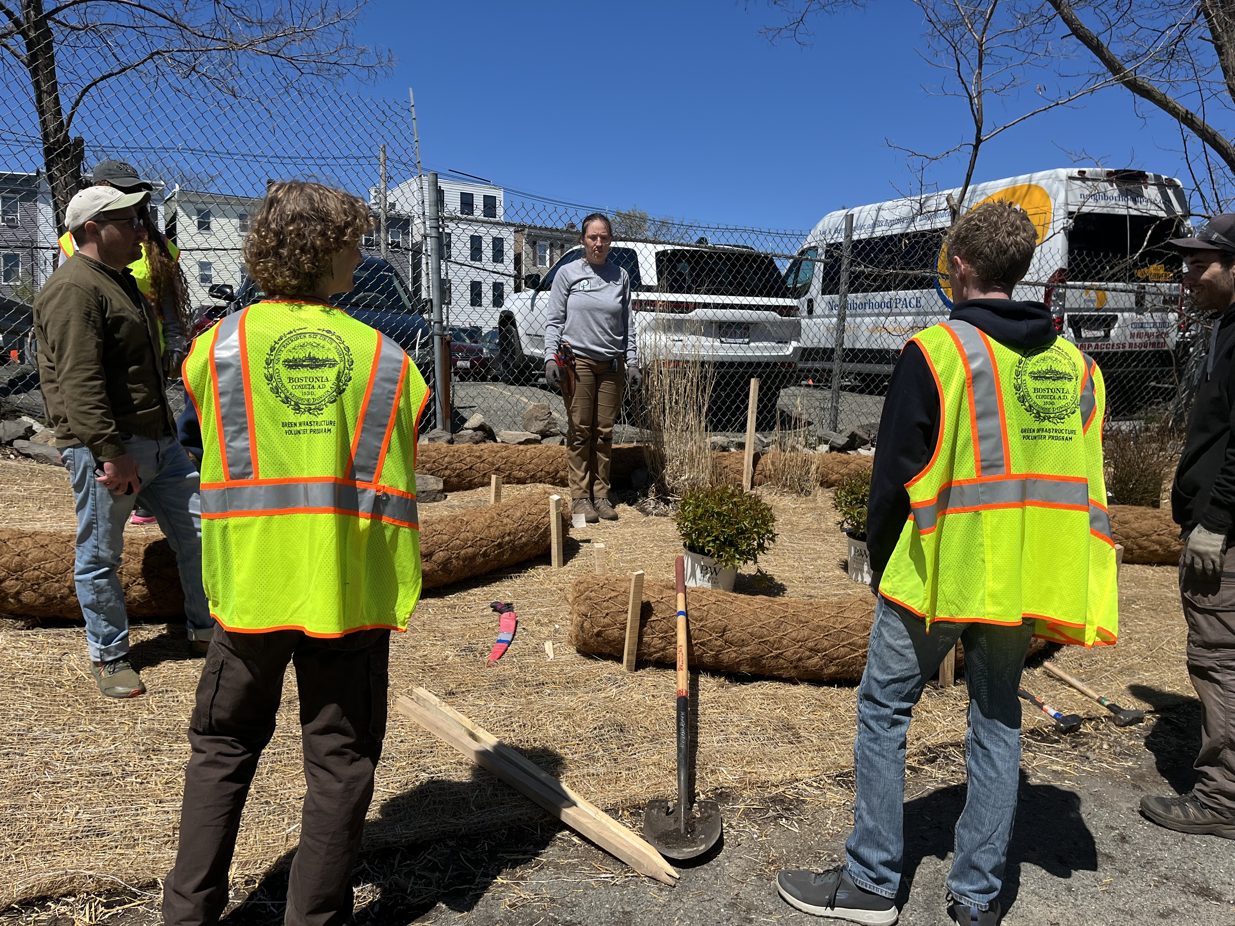 The greenway is prone to flooding in the low-lying areas, preventing commuters from using the path after a storm. To help mitigate the risk of flooding, Climate Corps worked on 3 projects with the City of Boston’s Office of Green Infrastructure.
