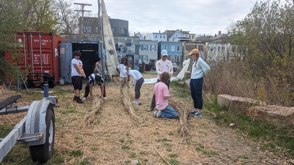 Noa from Emerald Tutu talked about floating wetlands – floating structures made with biomass where marsh grass can grow and protect the coast from flooding. The Climate Corps fellows are working Emerald Tutu to experiment with better ways to build floating wetlands.