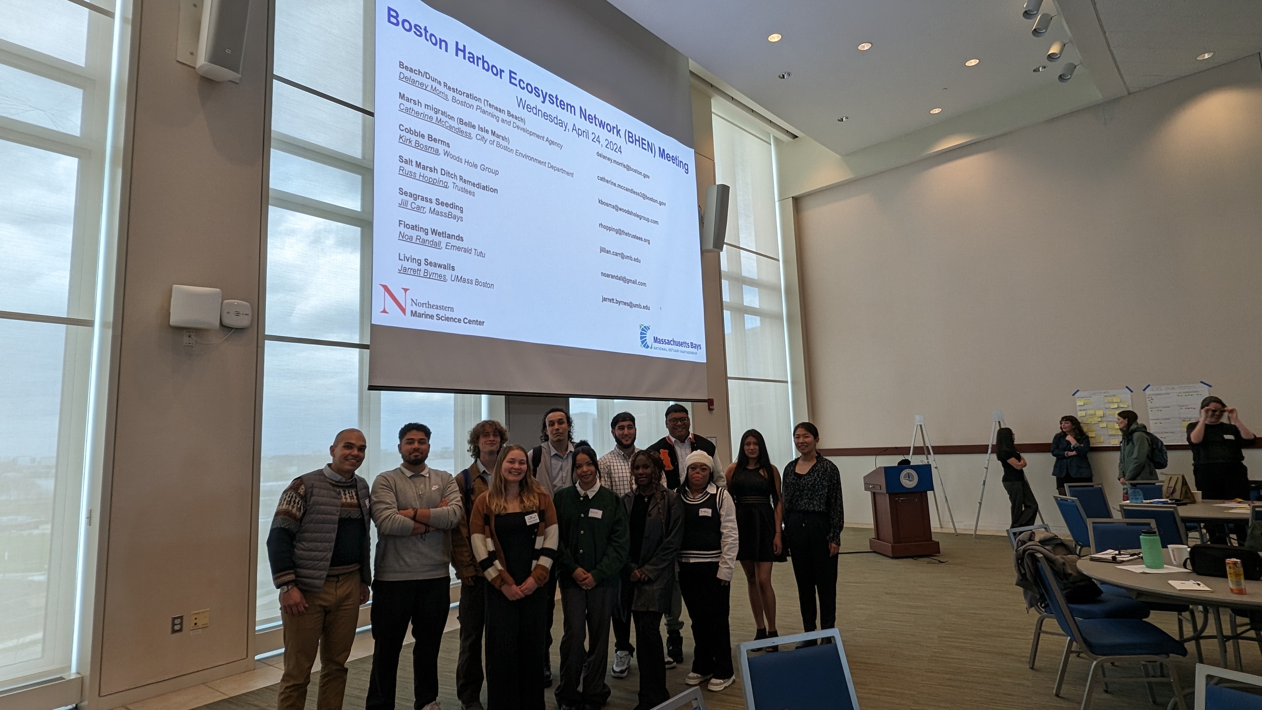 Emerald Tutu, one of our partners in the Youth Climate Corps Program, presented their work at the Boston Harbor Ecosystem Network (BHEN) spring 2024 meeting at UMass Boston. The Youth Climate Corps Program fellows also attended the meeting to learn about the initiatives to support building coastal resiliency.