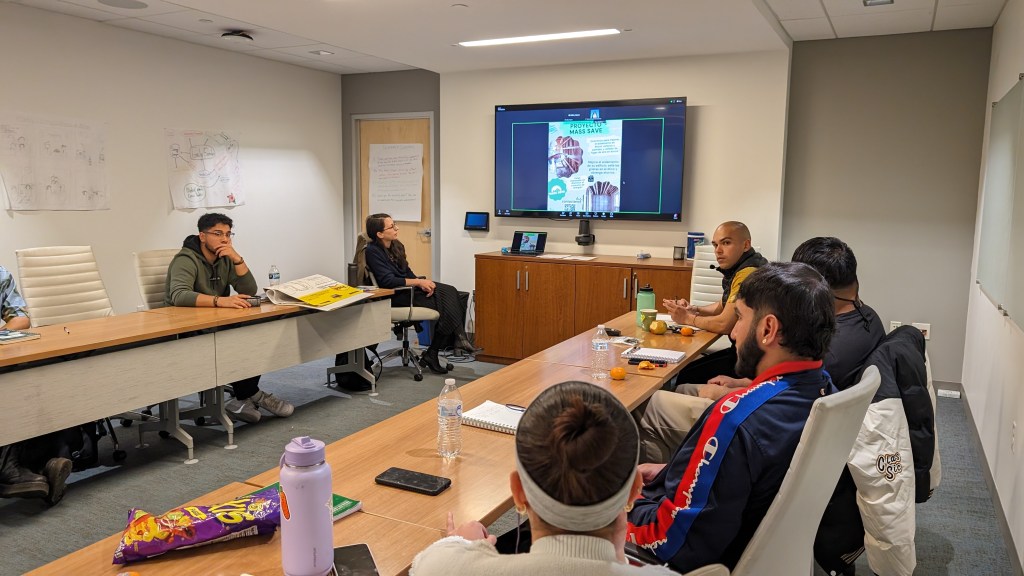 They learn about climate change, and programs that the City of Boston offers to its community members to collectively reduce the emission of greenhouse gases and mitigate climate change, such as Community Choice Electricity and Mass Save.