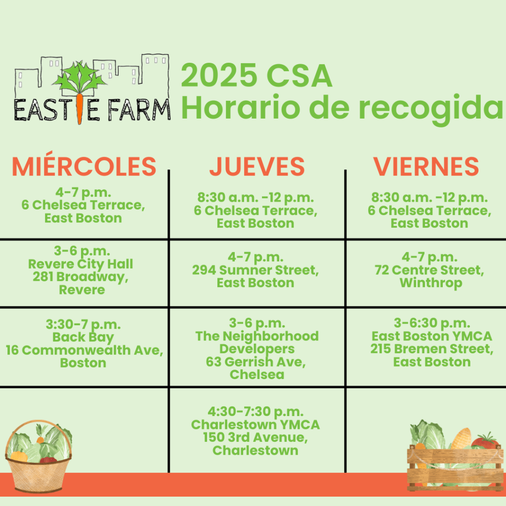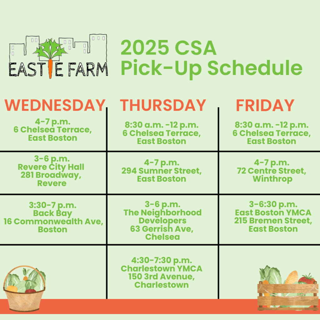 Additional locations and times may be added. If you cannot commit to any of these times, please reach out to csa@eastiefarm.com