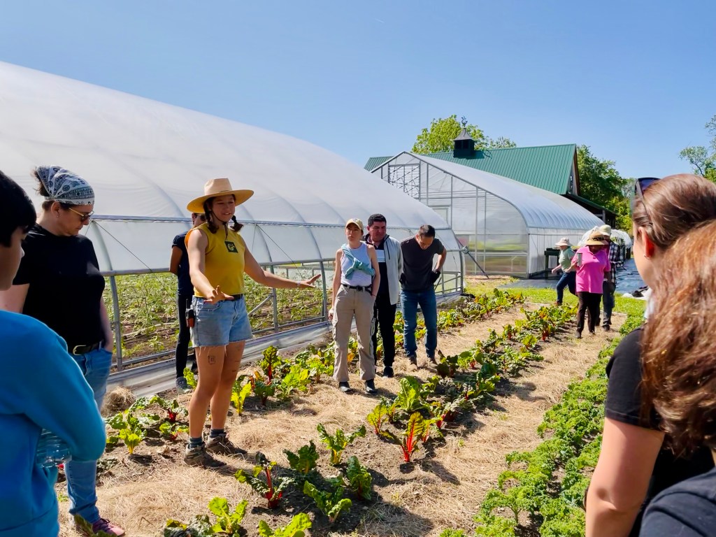We kicked off the day with a tour of the propagation house, where trays of seedlings, including watermelon and lettuce, were just beginning to take root. From there, we moved on to the tomato greenhouse, where sweet alyssum (a dainty white flower) grows alongside the tomatoes. Turns out, this flower attracts a parasitic wasp—nature’s best defense against the hornworm, a notorious tomato-chomping pest. Who needs pesticides when you have beneficial bugs doing the work?