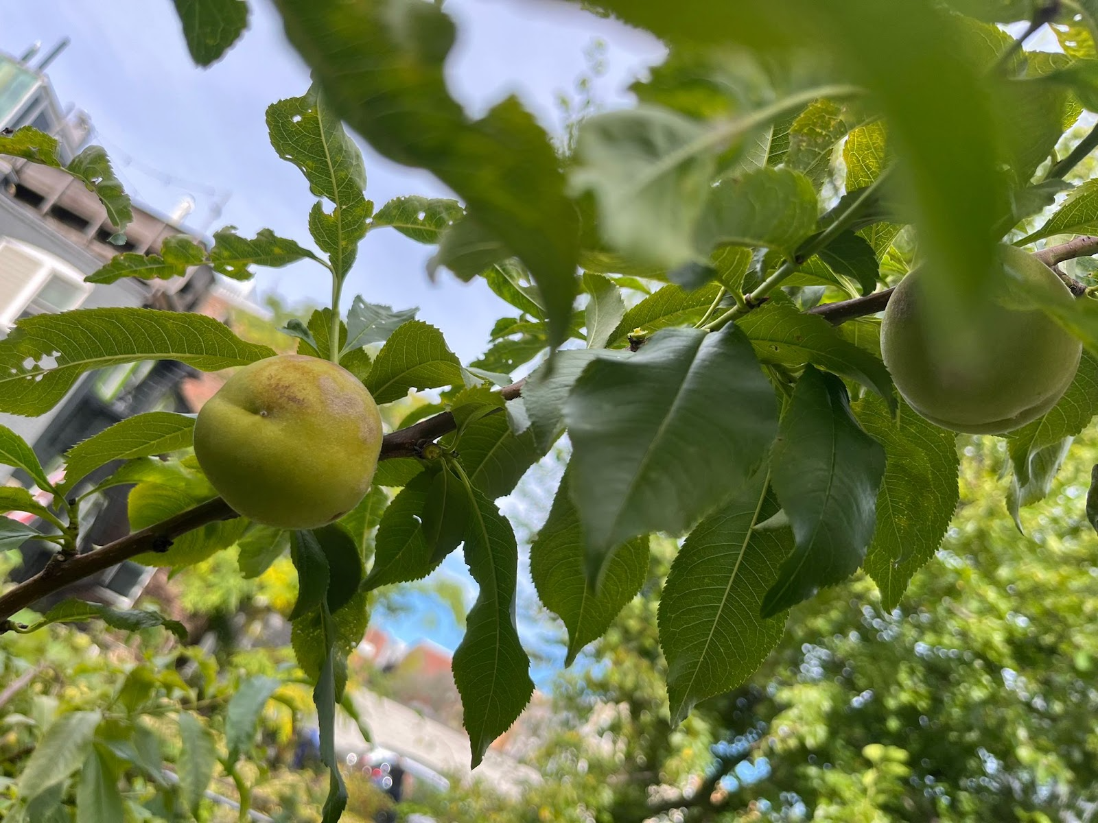 Like plants in your garden, the spacing recommended for fruit on a peach tree is 1 fruit every 6 to 8 linear inches. This means that roughly ⅔ of the fruit from peach trees needs to be removed 20 to 40 days after full bloom. This allows the fruit left on the tree to mature into high quality produce, but more importantly it prevents the tree from being overburdened by the excess growing fruit and breaking branches, as happened here.